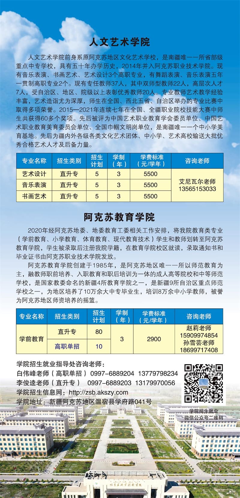 2023年阿克苏职业技术学院高职单招、直升专招生简章